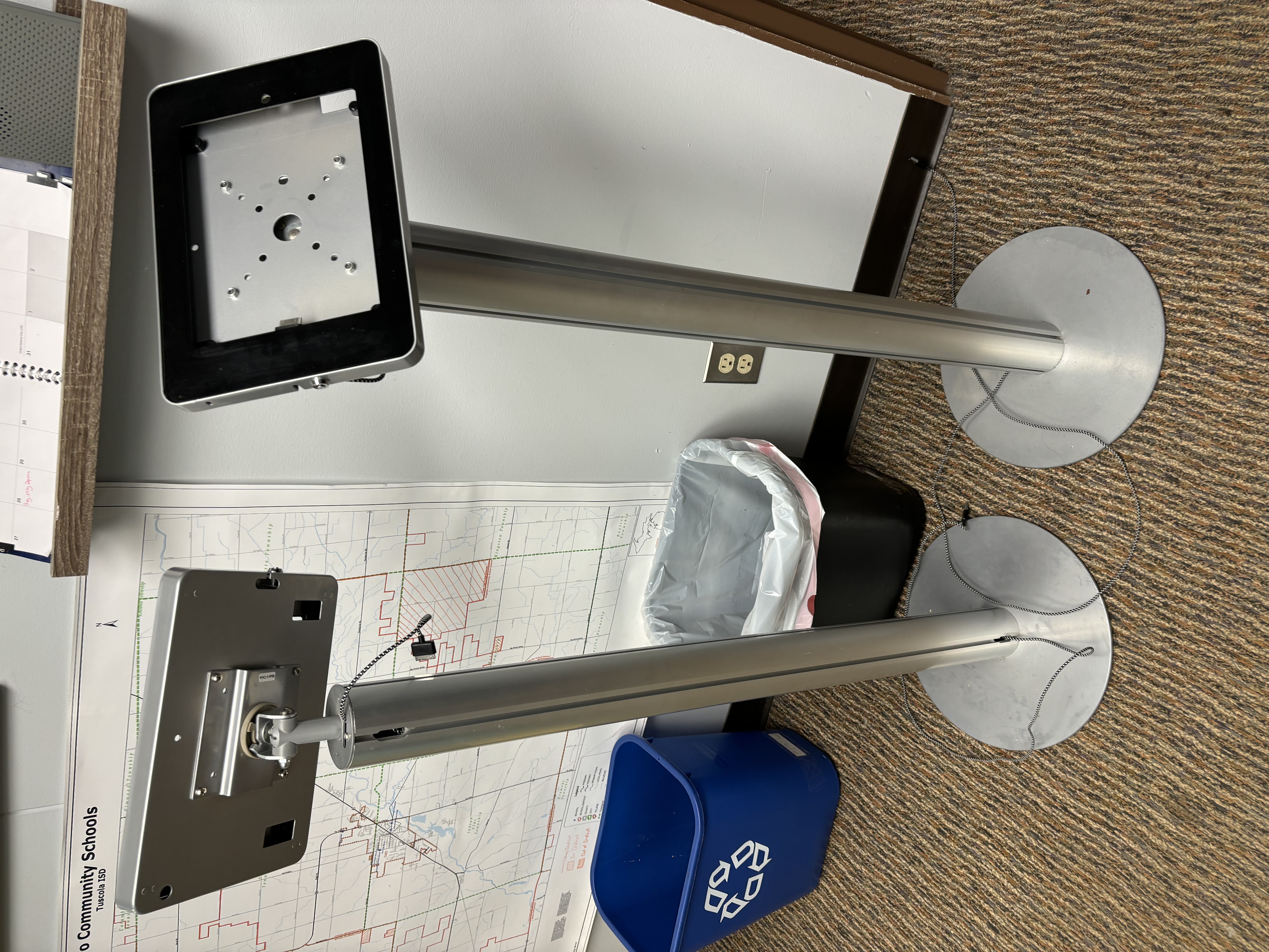 We have a few items that are free to the first library that claims AND picks them up. We have a stand that used to contain a catalog computer, its dimensions are 23 ½” w x 19 ½” d x 43 ½” h. We also have two metal kiosks that uses to contain iPads. They fit 2nd generation iPads but they do not fit 6th or 9th generation iPads (which is what we switched to). These items cannot be sent through RIDES and must be picked up. Erin Erin N. Schmandt Director Caro Area District Library 840 W. Frank St. Caro, MI 48723 (989) 673-4329 x102 Winner of the 2023 Michigan Library Association Intellectual Freedom Award