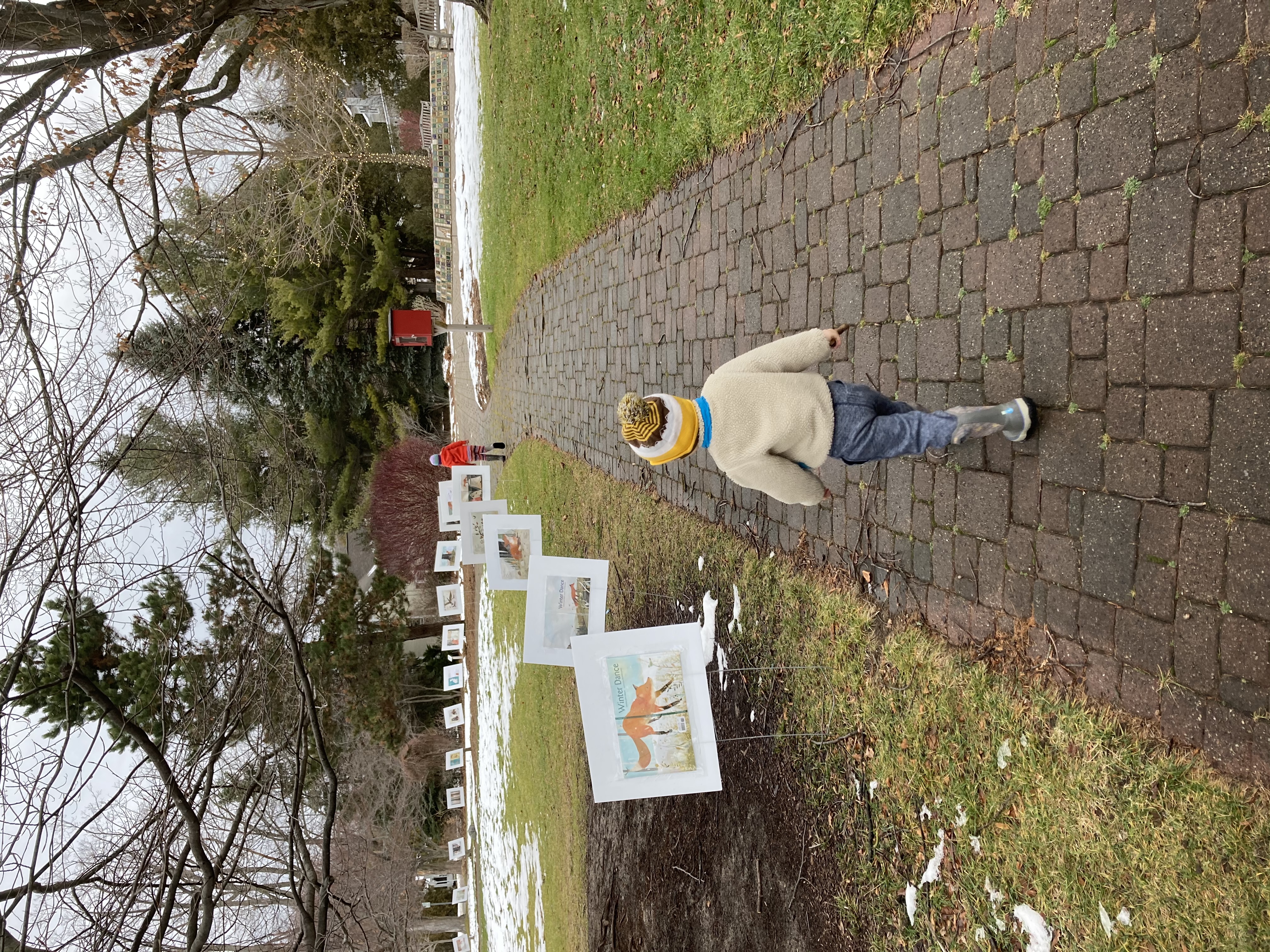 We are working on a more permanent storywalk with outdoor exhibit quality permanent installations. Last fall and winter we put up the storywalk in the attached picture by purchasing the panel and holders from Amazon. The metal wire holders didn't do well with our location next to Lake Michigan with the almost continuous winds. Many of the frames broke at ground level after being bent back and forth by the wind 24/7. On Fri, Jul 30, 2021 at 2:59 PM EMAIL TEAM via Michlib-l <michlib-l@mcls.org> wrote: