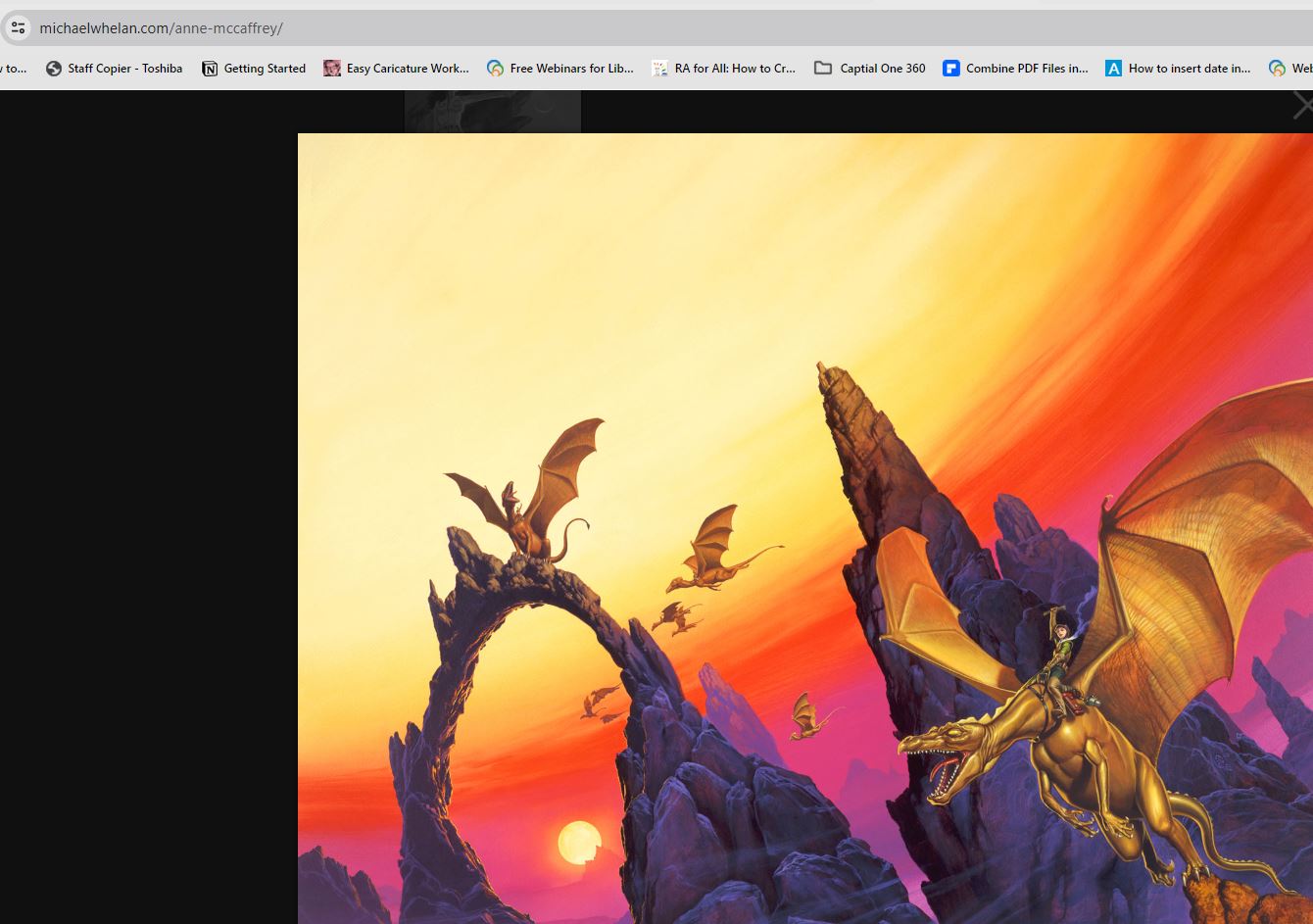 I agree with David - looks like a Dragonriders of Pern cover. On Tue, Apr 23, 2024 at 9:58 AM David Conklin via Michlib-l < michlib-l@mcls.org> wrote: