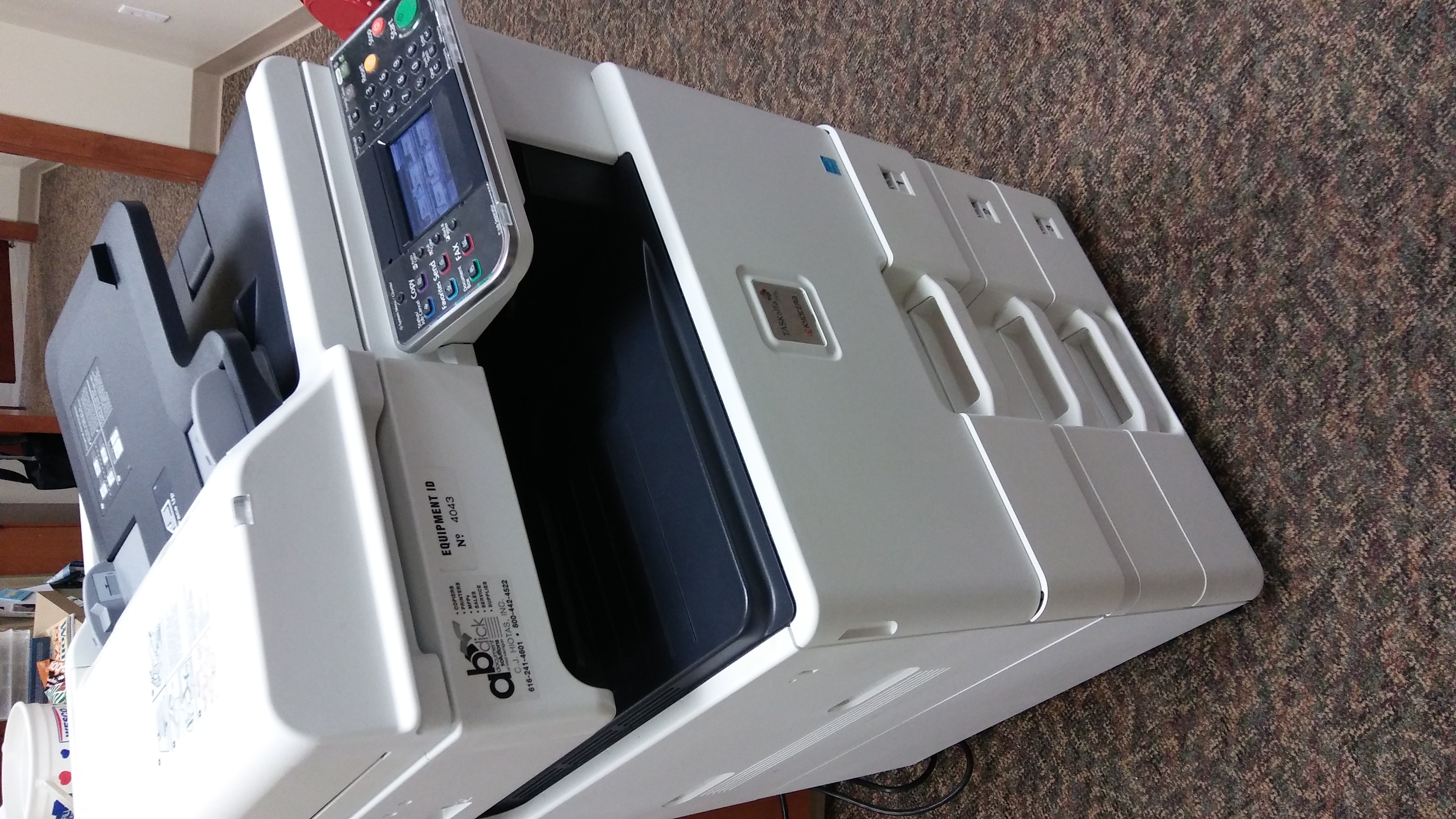 We have a Kyocera Taskalfa 255c machine for sale. It works- we just upgraded. Fax module Color/grayscale copies scan to PC, USB, or email 3 drawers set up for 8.5 x 11 and 8.5 x 14 bypass tray will hold up to 11 x 17 Toners currently installed have at least 25% in them. We had a maintenance agreement with AB Dick in GR. If you buy you can arrange an agreement with them, or anyone who services Kyocera products. We will help you load, but you need to come get it. Mary Russell Assistant Director Tamarack District Library 832 S Lincoln Ave, Box 469 Lakeview, MI 48850 989-352-6274 tamaracklibrary.org