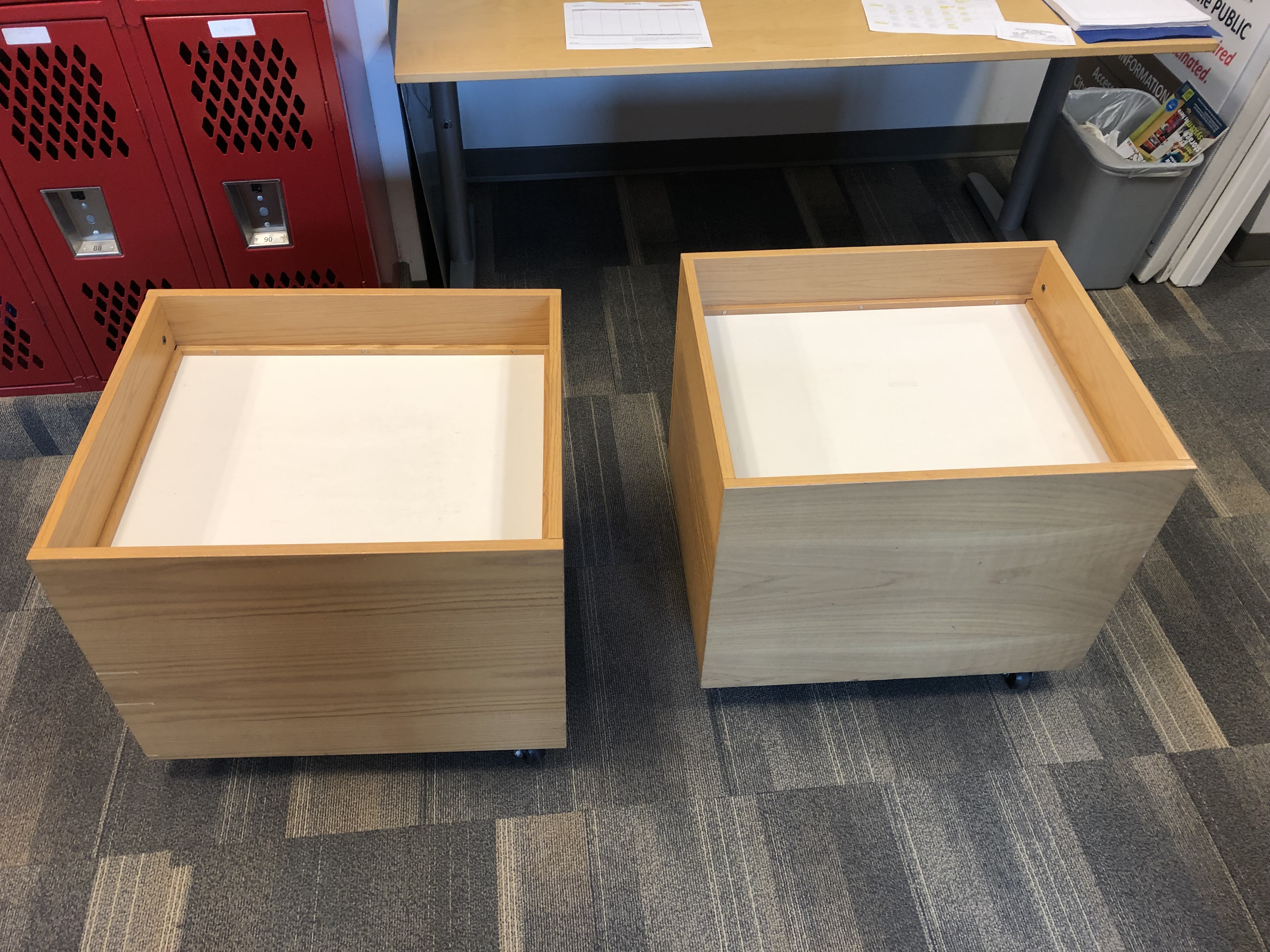 Hello Everyone, We have two wooden (oak) book drop interior boxes up for grabs. They are on working caster wheels and have spring-loaded formica laminate floors that lower when weighed down. Some dents/scratches and tape on outsides and corners. Dimensions are: 26" Wide 22" Deep 23" High (including wheels) Pick up at: Oak Park Public Library 14200 Oak Park Blvd. Oak Park, MI 48237 Thanks, Kimberly Schaaf Director, Oak Park Public Library 14200 Oak Park Blvd. Oak Park, MI 48237 Office: 248-691-7566 Work Cell: 248-914-3318